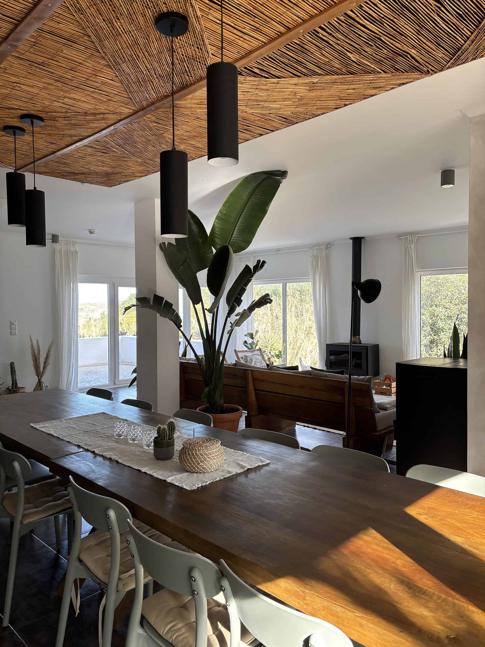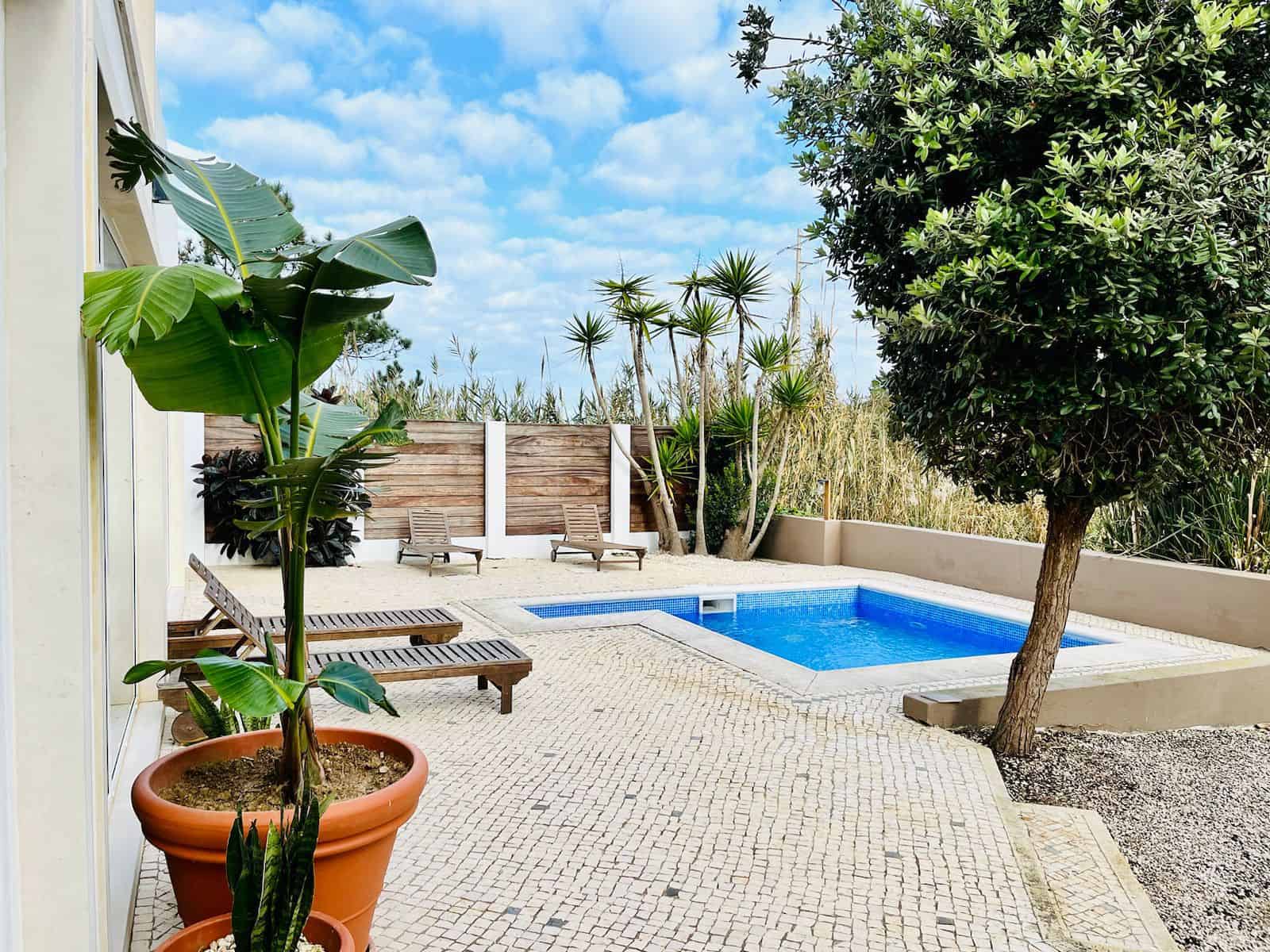 Im Garten erwarten dich ein Pool, Hängematten und Sonnenliegen. Zudem gibt es eine Sauna, und einen hellen Yoga Raum mit direktem Zugang zum Pool. Zu Fuß erreichst du zwei der schönsten Strände und Surfspots der Region: Foz do Lisandro und São Julião. Das Interieur ist inspiriert von der japanischen Philosophie des „Wabi-Sabi“ – der Schönheit des Unvollkommenen.