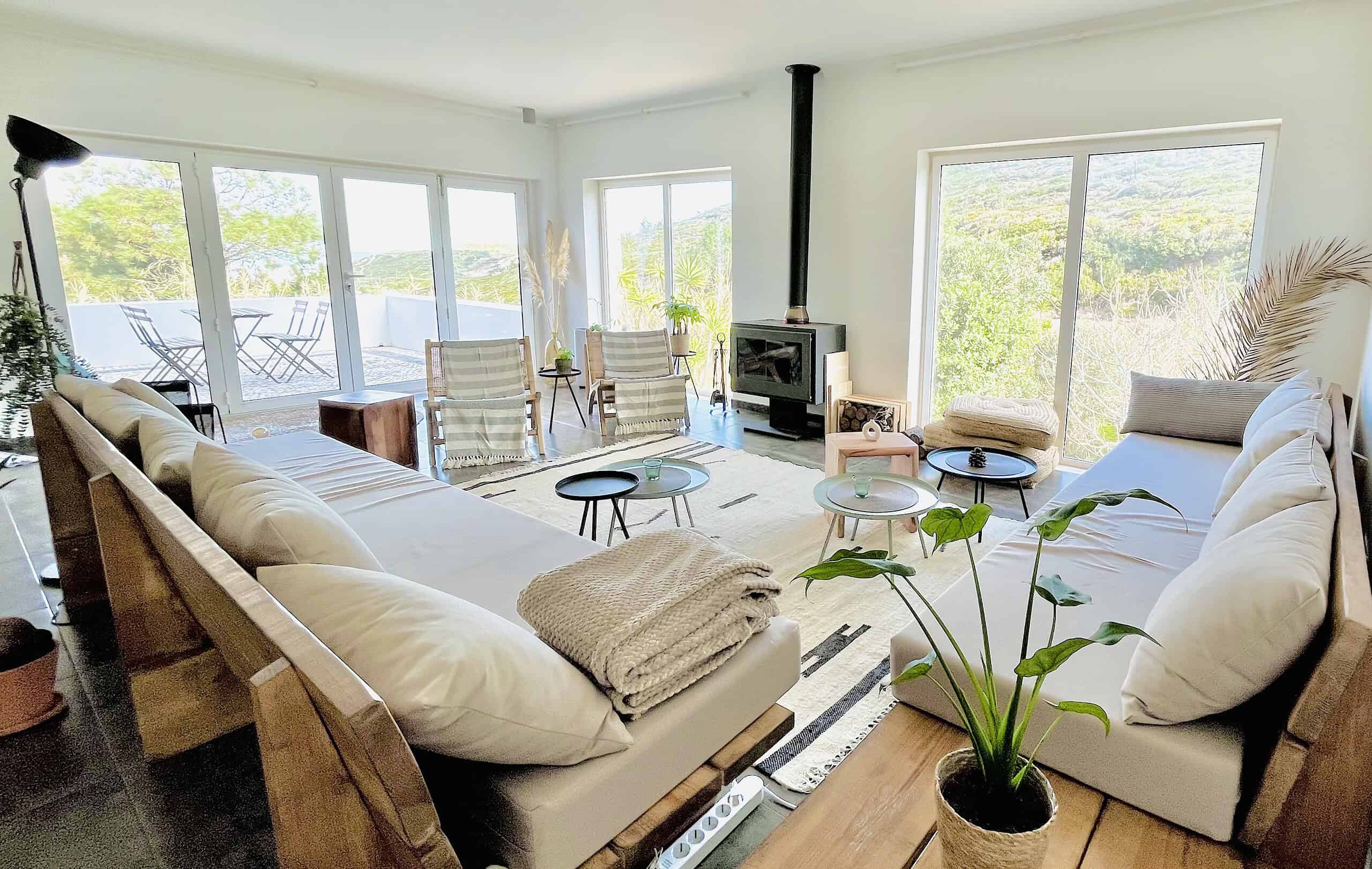 Unsere Unterkunft SÃONE ist ein verstecktes Refugium in einem grünen Tal, ganz in der Nähe des lebendigen Surf-Ortes Ericeira (nur etwa 12 Minuten mit dem Auto entfernt). Direkt am Strand gelegen, kannst du morgens mit dem Klang des Ozeans aufwachen. Das Guesthouse ist mit allem ausgestattet, was du für tiefe Entspannung brauchst. Die drei Etagen der modernen Villa bieten viel Raum zum Ankommen und Wohlfühlen. Es gibt eine großzügige Wohnküche sowie ein großes Wohnzimmer mit Kamin. Außerdem lädt eine gemütliche Leseecke zum Verweilen ein.
